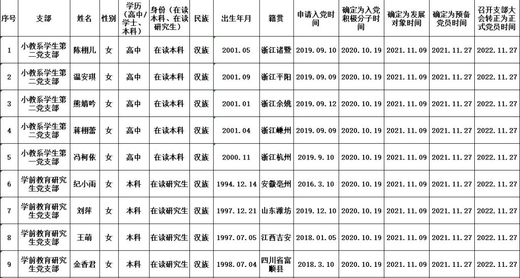 根据《中国共产党发展党员工作细则》中发展党员的文件要求,经对陈栩儿等42名同志的预备党员转正条件、转正程序等进行严格审查。2022年11月30日,学院党委会集体审议讨论了陈栩儿等42名同志的转正问题。党委委员共7名,实到会7名。经逐个审议和表决,7名党委委员一致认为陈栩儿等42名同志已具备正式党员条件,同意批准按期转为中共正式党员,党龄从预备期满转为正式党员算起。具体名单公布如下:
