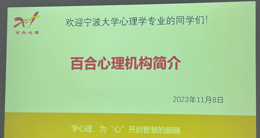 相关负责人为学生介绍了百合心理机构的相关基础信息,从该机构的文化理念、寓意、价值观、使命等多角度展示该机构的专业性和普适性。同时,着重强调了百合心理的主要专业体系,展示了该机构所包涵的丰富的内容和扎实的理论与实操技术。并且,该机构为h漫