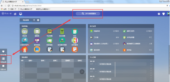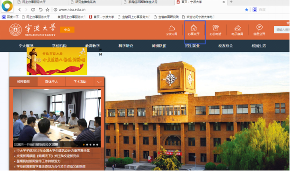 1、 在宁大内网主页右侧点击“网上办事大厅”或学校外网主页上方点击“办事大厅”,并登录。