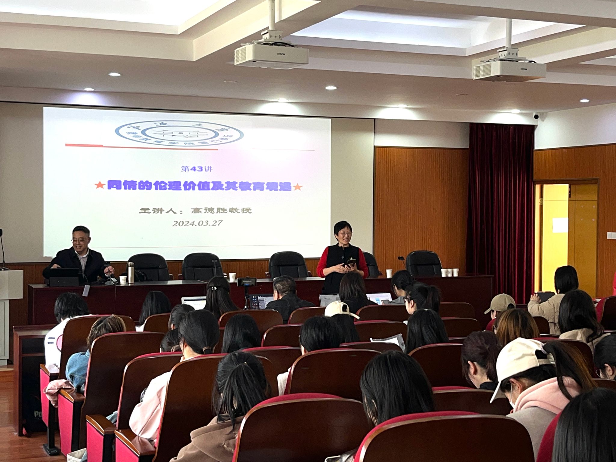 讲座伊始,在陶志琼教授的主持下通过《上春山》这首歌曲再次表示了对高德胜教授到来的热烈欢迎。