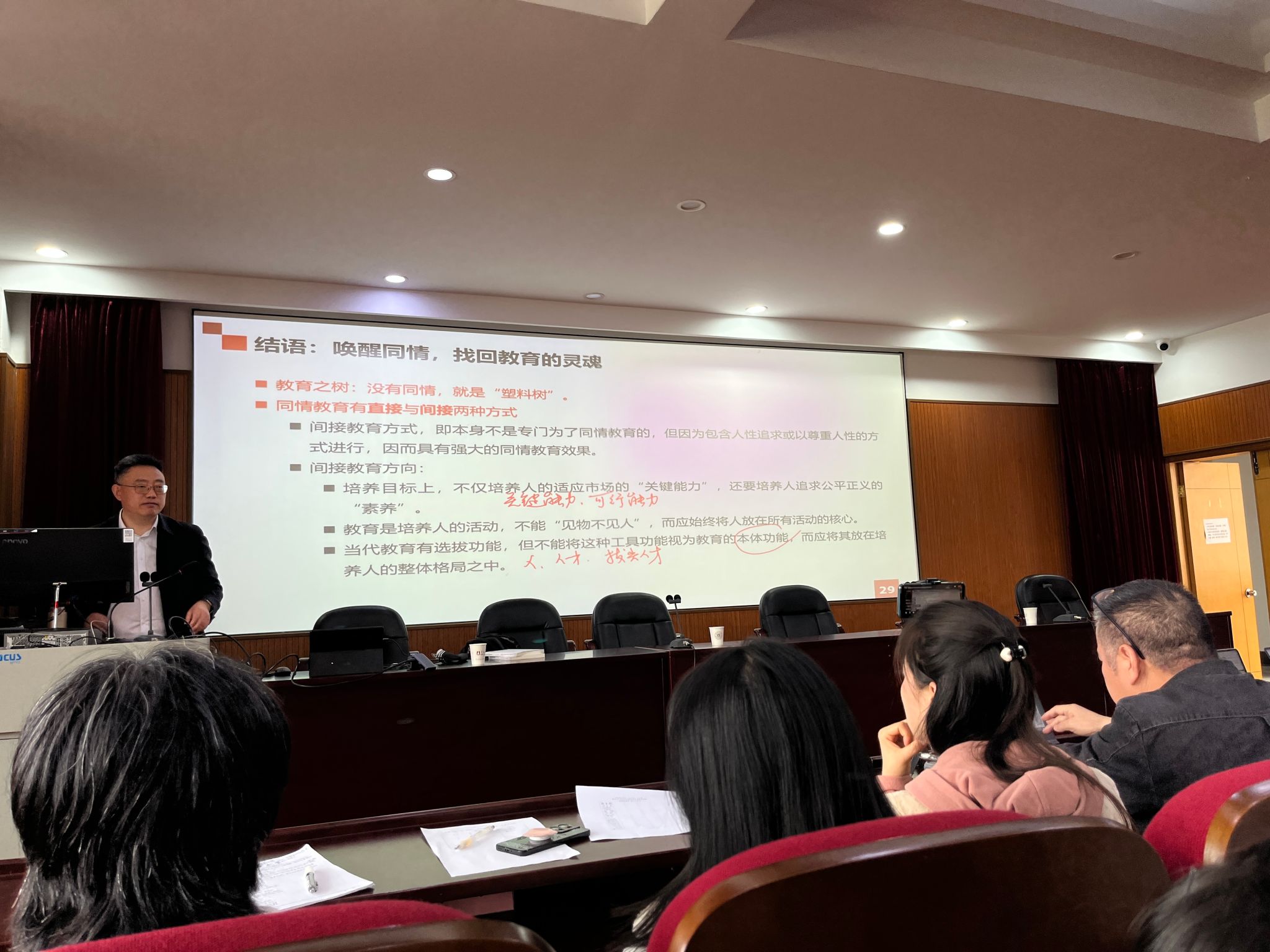 在此之后,高德胜教授向大家展示了同情在当代教育中的重要性以及在现代社会面临的处境,最后呼吁大家唤醒同情,找回教育的灵魂!