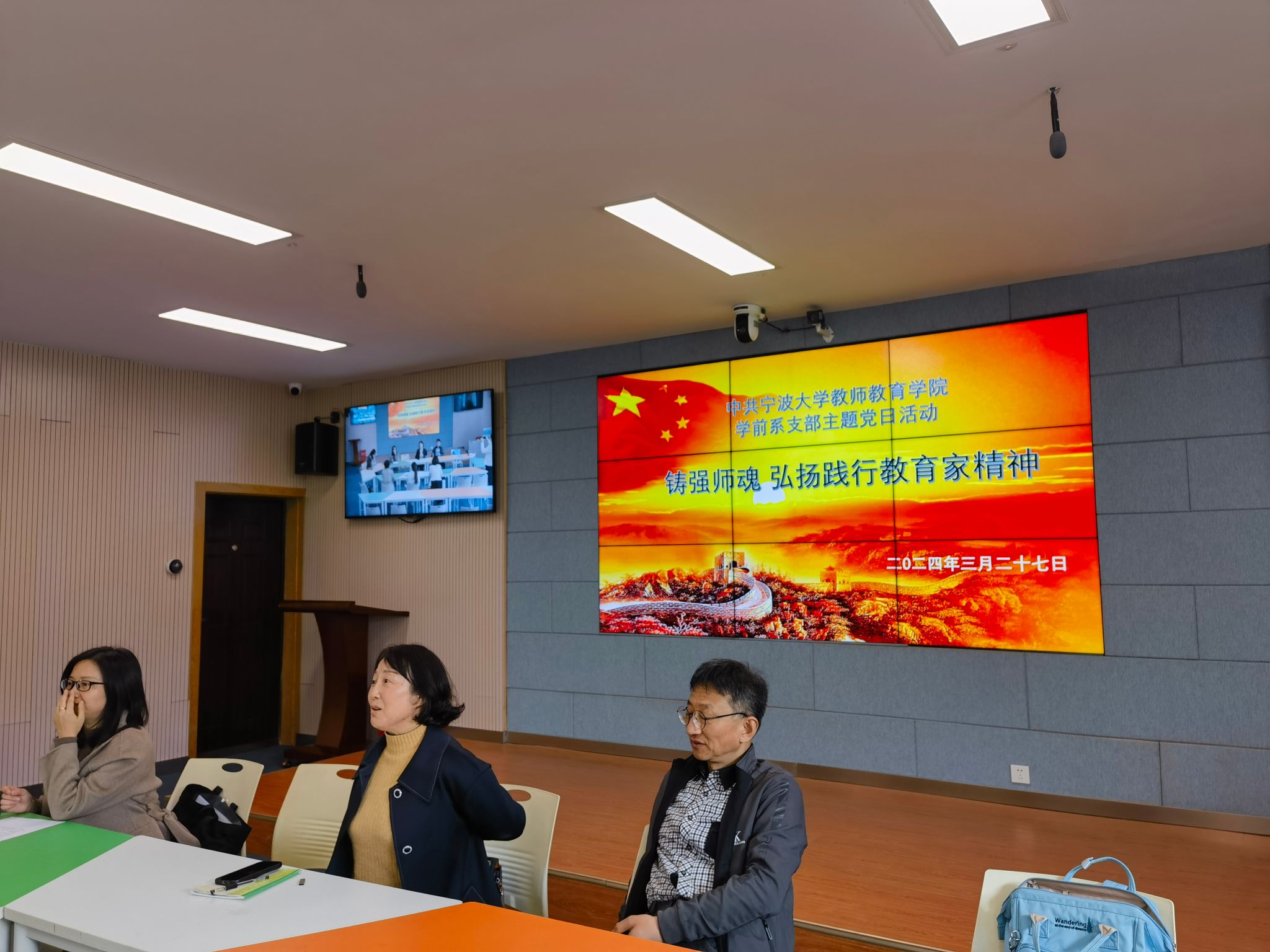 学前教育系教师党支部于西区实验楼208室、210室举行了“铸强师魂,弘扬践行教育家精神”主题党日活动。学前教育系教师党支部全体党员、学前系骨干教师、学工办张倩倩老师参加了此次活动。