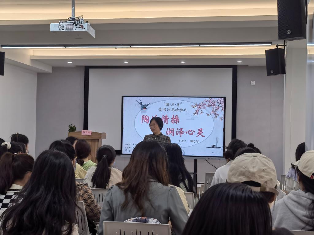 团委于甬江公寓6号楼春雨书院多功能厅举行了“阅·思·享”读书沙龙之“陶冶情操,润泽心灵”活动。我们邀请到研究生导师陶志琼教授与四十余名本科生一起在春雨书院创立了“陶润读书社”。在陶老师的带领下,读书社的第一次活动为诵读《诗经》。
