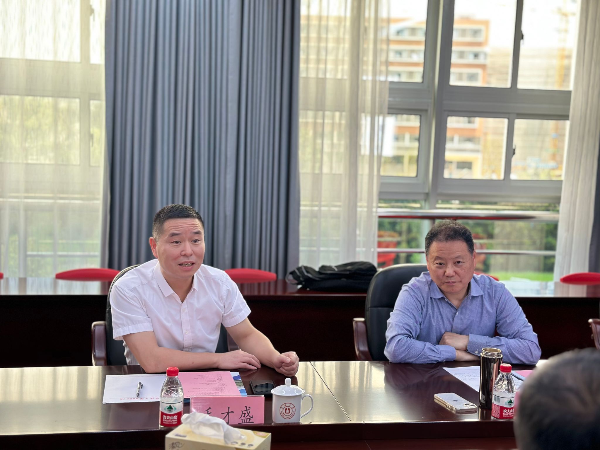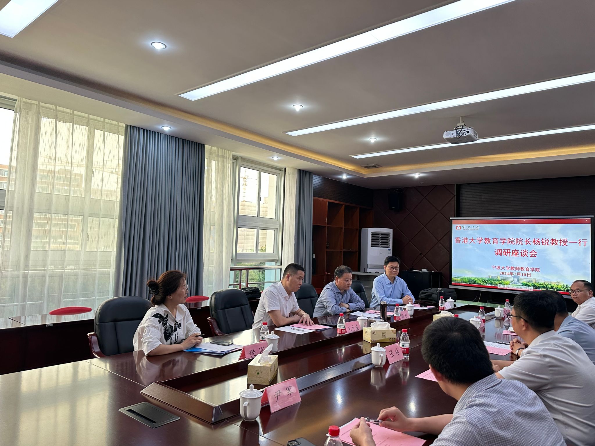 调研座谈。宁波市教育局局长毛才盛、国际教育交流合作处副处长樊园以及h漫
