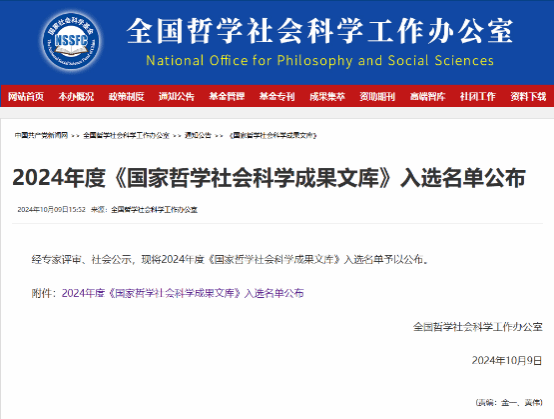 2024年10月9日,全国哲学社会科学工作办公室公布了2024年度《国家哲学社会科学成果文库》入选名单,h漫
