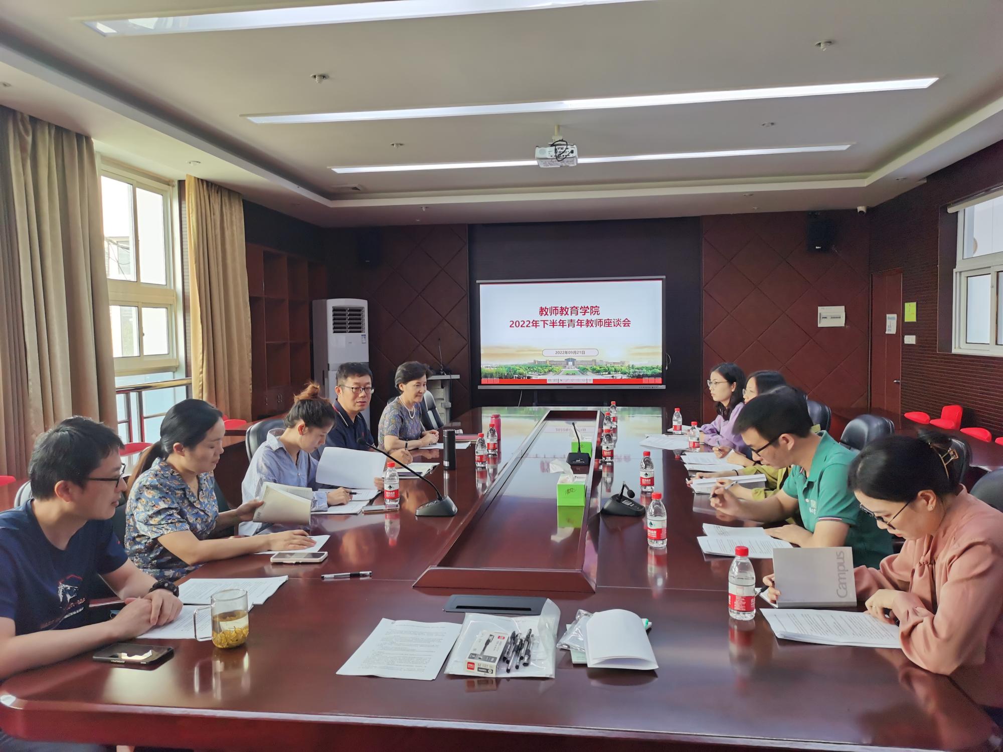 在实验楼307召开青年教师座谈会,学院党委书记方莹芬发表讲话,分管本科教学和科研工作的张林副院长主持会议,学院2022年新引进的5位优秀博士及学院党政办主任、教务办主任、人事秘书、教学秘书、科研秘书等参加座谈。