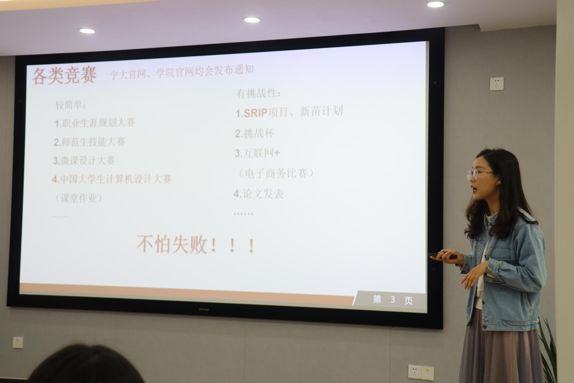 首先向我们分享的是徐文倩学姐,徐文倩学姐向同学们介绍了自己的学生工作经历,在谈到学习方面时,她讲述了自己参与各类竞赛的过程,鼓励同学们积极参加各种活动和竞赛,不要害怕失败。接着,她分享了在贵州省晴隆县第六小学支教有意思的经历,并简单解读了研支团推免条件。随后,徐文倩学姐劝勉同学们做好时间管理与规划,充实本科学习生涯。第二位分享的是张烨敏学姐。张烨敏学姐特别强调了学生干部经历的重要性,她曾任h漫