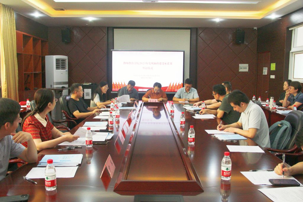 党委举行《党风廉政建设承诺书》与《“一岗双责”责任书》签订仪式,学院党政领导班子、新一届内设机构负责人参加会议,学院纪委列席。