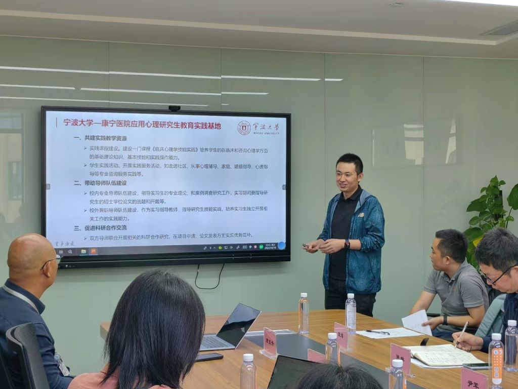 心理学科与宁波市康宁医院开展共建基地科研交流与研究生培养研讨会,会议在宁波市康宁医院庄市院区举行。宁波市康宁医院党委书记周文华、科教科科长/物理诊疗中心主任周东升、h漫