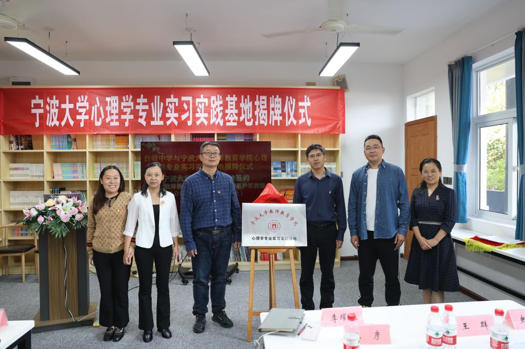 副院长尹军教授和李耀凤校长分别代表双方单位签署合作协议。学院党委书记张林教授,白峰街道党工委副书记、办事处主任王群以及北仑区教育局负责德育工作的团工委书记史科贻三人共同为心理学专业实习实践基地揭牌。会后,心理系教师一行人在白峰中学校领导班子的带领下参观了校园,双方就新形式下白峰中学学生心理健康教育工作的疑难困惑、新教师的职业心理健康等问题展开交流。此次签约授牌仪式的成功召开为促进乡村教育振兴奠定了坚实基础。