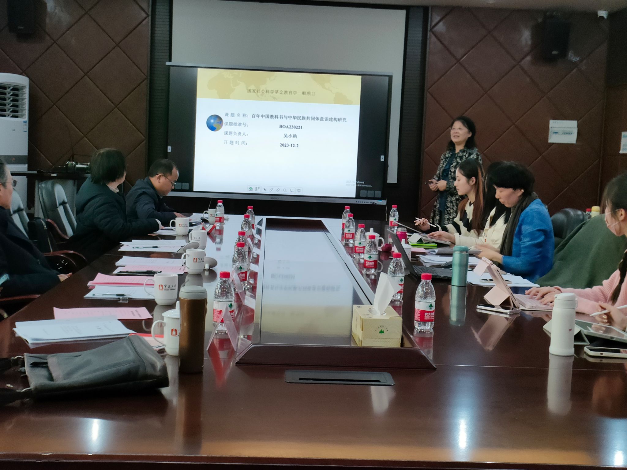 院长张宝歌教授主持。沈玲蓉教授进行了“百年语文教科书编排体系研究”(课题批准号:BHA230138)开题汇报,吴小鸥教授进行了“百年中国教科书与中华民族共同体意识建构研究”(课题批准号:BOA230221)的开题汇报。