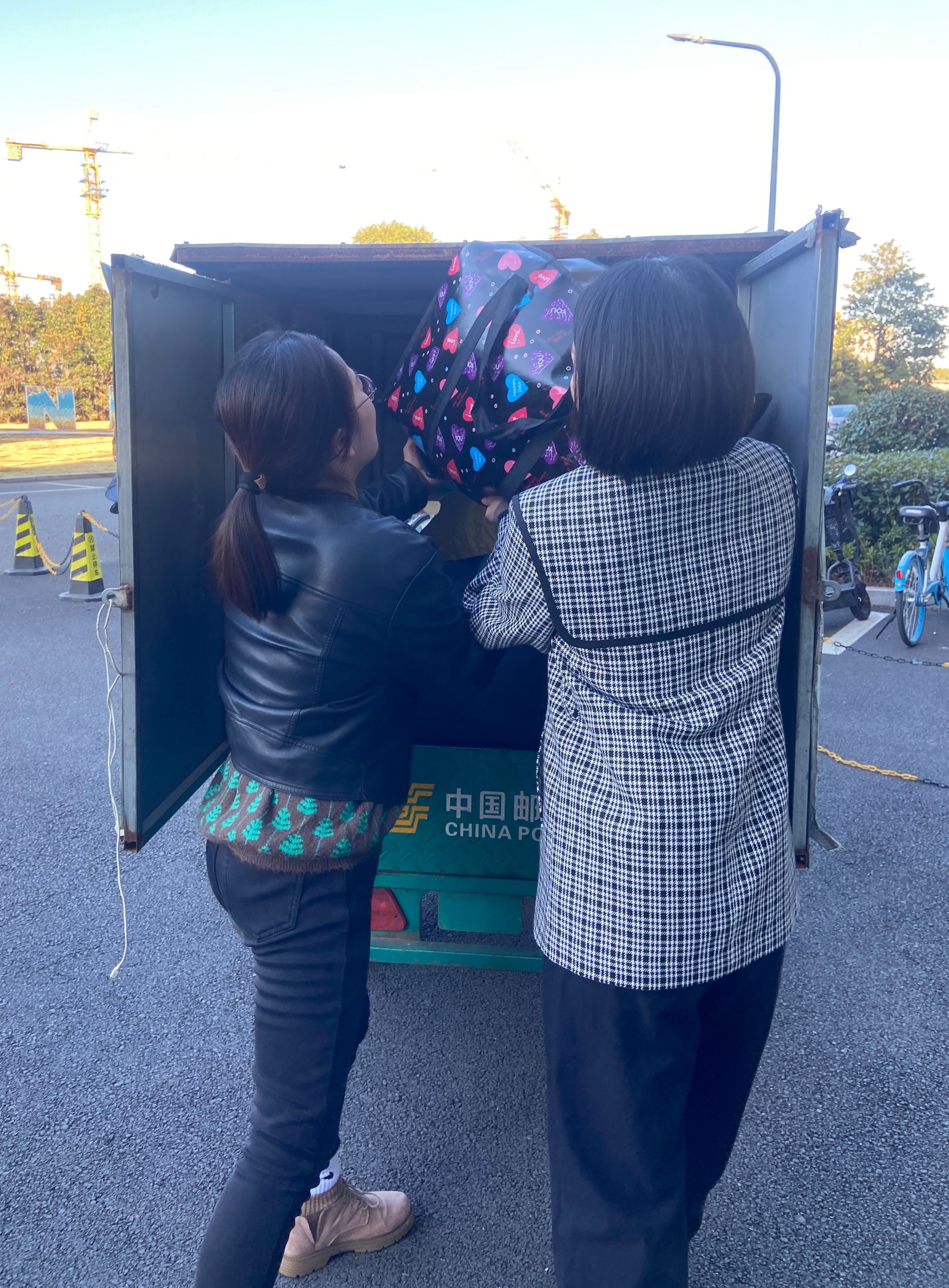 清点结束后,在支部党员们的共同努力下,一袋袋鼓鼓囊囊的捐赠衣物承载着同志们沉甸甸的爱心,踏上了前往河南省驻马店市正阳县熊寨镇王大塘村的路程。