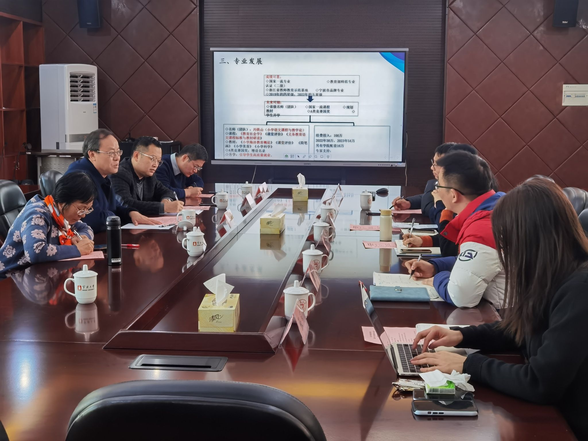 会上,首先由书记张林教授介绍和欢迎与会专家。随后小学教育系主任唐成军和学前教育系主任汪洁萍就专业建设现状、人才培养举措和学生发展成效等方面向与会专家进行汇报。接下来与会专家进行了一一点评。毛亚庆教授肯定了小学教育专业取得的教学成果,提出该专业后期需凝练专业特色,强化区域文化,实现师范教育可持续发展;同时肯定了学前教育专业在深入对接地方幼儿园方面取得的实效,指明该专业后续可加强保教管理领域的研究。最后尹军副院长对毛亚庆教授的指正把脉表示感谢,他表示通过此次会议,梳理了各专业前期的建设工作,为后续的专业建设提供了可操作性建议和思路,明确了下一阶段专业建设的方向。