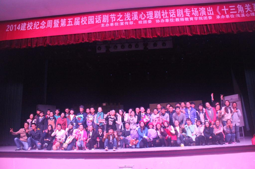 浅溪心理剧社的年度大戏《十三角关系》,在林杏琴会堂成功上演。院党委副书记朱学庆老师,院团委书记冯剑锋老师,以及话剧指导宋芸芸老师,出席并观看了演出。大戏还吸引了来自宁大各学院的学生们,会堂内座无虚席。