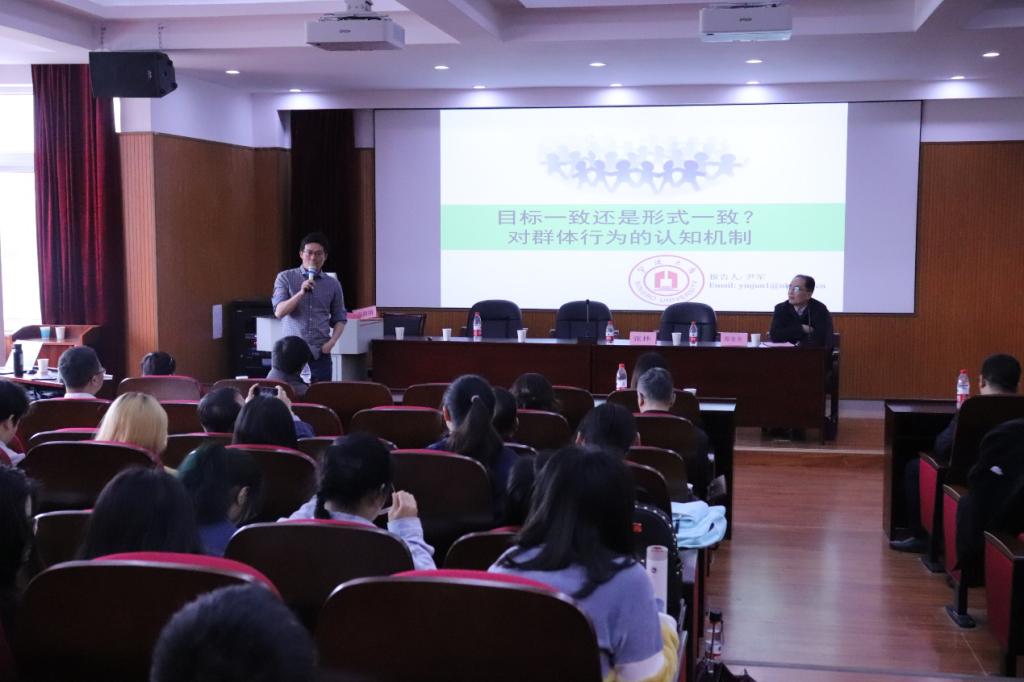 尹军副教授以“目标一致还是形式一致?对群体行为的认知机制”为题展开。尹军副教授从群体行为具有一致性这一社会现象出发,探究在群体情境中,人们如何依据群体目标或动作形式建立群体行为一致性预期,同时提出目标激励与习俗形成的管理启示,其拓展了与会者对群体行为的认识。