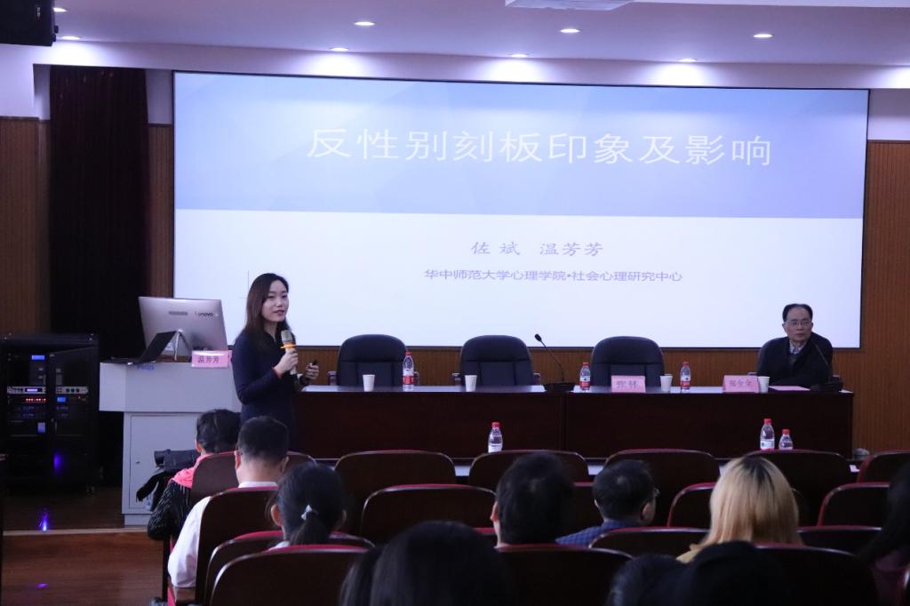 报告二由华中师范大学心理学院温芳芳副教授以“反性别刻板印象及影响”为题展开,温芳芳副教授从反性别刻板印象这一实际社会问题出发,对其维护机制、评价演化及对人事决策的影响进行了深入的探讨,同时也分享了对此研究的未来研究展望。该报告拓展了与会者对反性别刻板印象的认识。