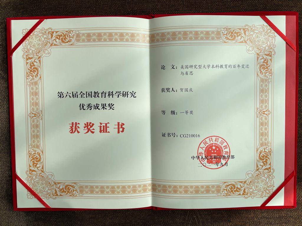 贺国庆教授的论文《美国研究型大学本科教育的百年变迁与省思》荣获一等奖、邵光华教授的著作《教师课改阻抗及消解策略研究》荣获二等奖。