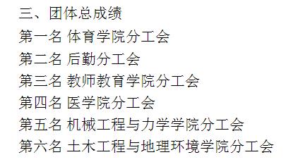 分工会取得了团体总分第三名的好成绩,仅次于体育学院分工会和后勤分工会。