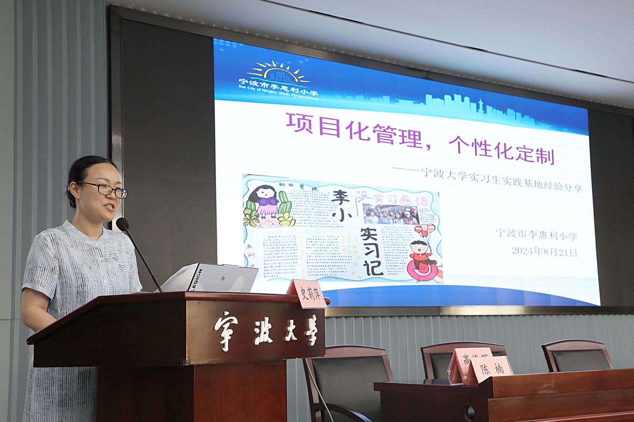 实习生实践基地经验分享》为报告主题,介绍了李惠利小学在实习生培养和教育教学管理方面的宝贵经验和创新做法。她围绕“保障”“融合”“奖励”三个关键词,探讨了双方在学校和导师层面的合作经验。在多年合作中,李惠利小学与h漫