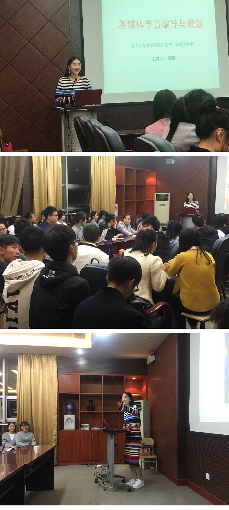 “教育智慧大讲堂”第八十一讲:新媒体节目编辑思路,讲座专家为宁波电视台主持人、编导徐颖,此次讲座有数字媒体技术、现代教育技术等专业近60余名师生参加。
