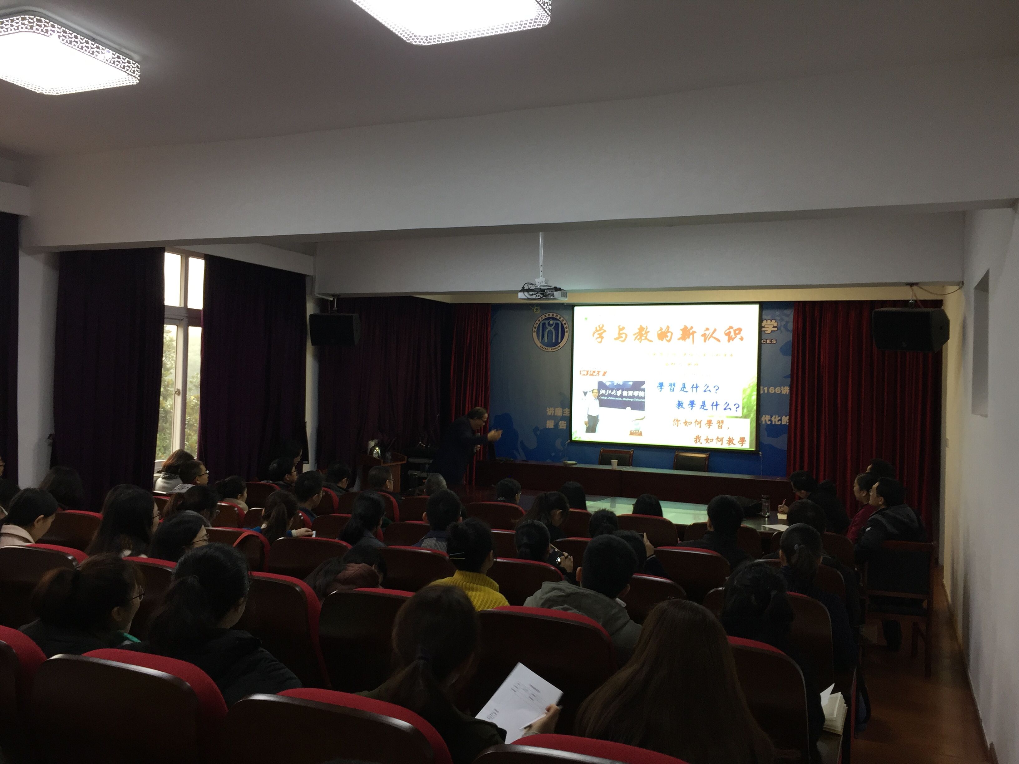 师生做了一堂题为“学习与教学的新认识”主题讲座。盛教授的讲座深入浅出,从教学和学习的关系以及如何有意义的学习角度开展他的讲座。