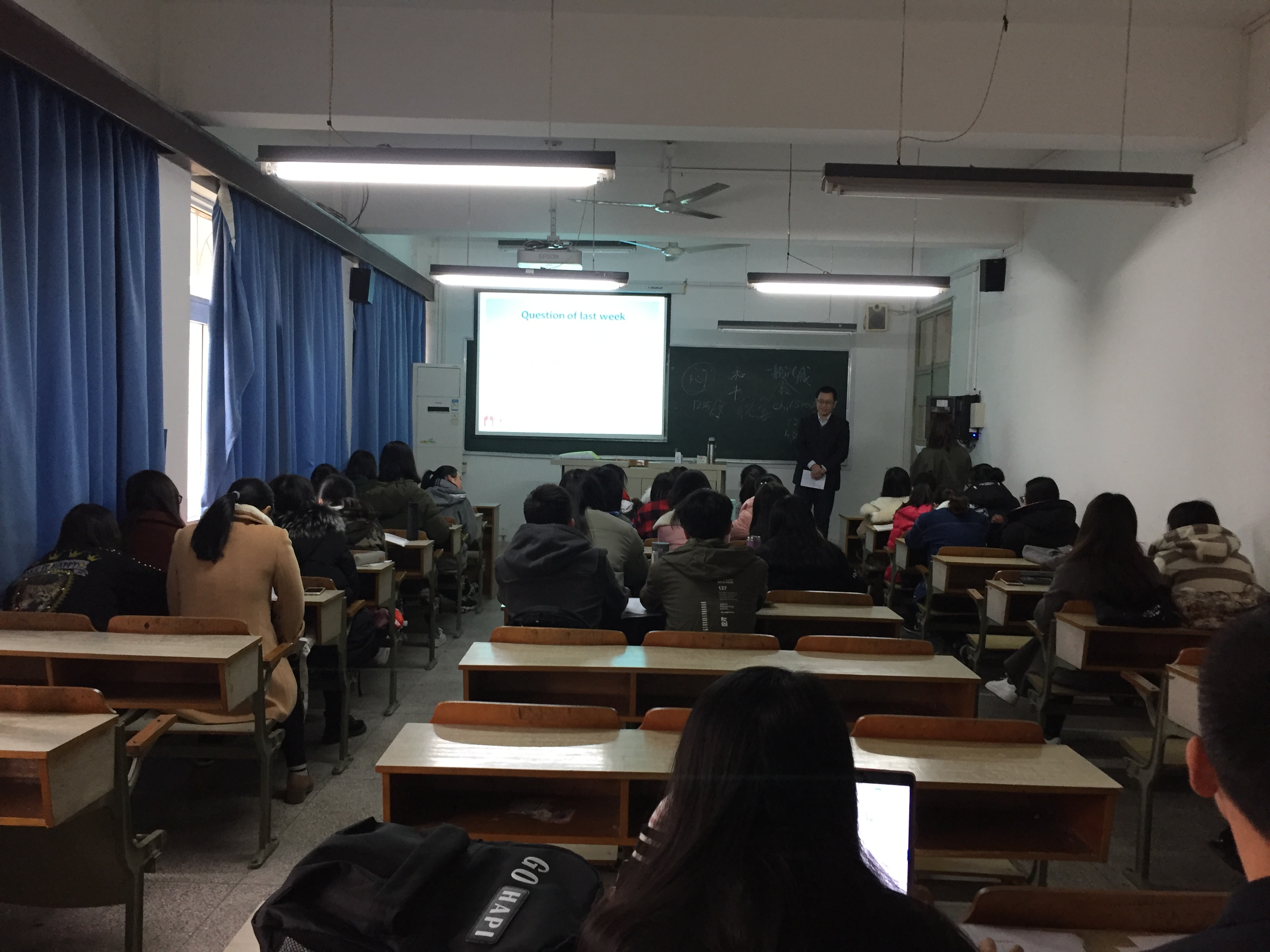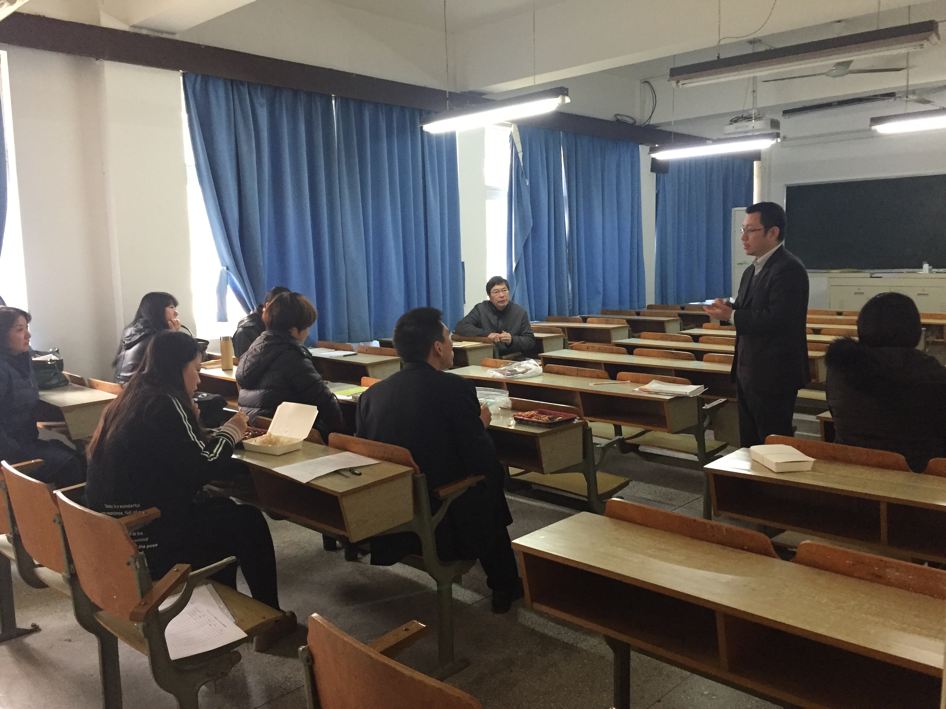 12月13日上午3、4节课h漫 英语教育系袁恺杰老师在西校区逸夫楼101教师面向全校开展了《大学英语口语四》课程的公开观摩课活动。h漫 教学副院长陈柏华、院督导主任黄荣良、院督导贺豪振、邢方以及h漫 青年教师、他院青年老师参加了本次观摩课活动。