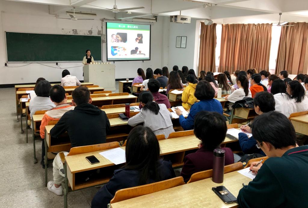 5月10日上午1、2节课h漫 学前教育系冯丽娜老师在西校区实验楼213教室面向全校开展了《学前儿童游戏》课程的公开观摩课活动。教务处副处长徐进、h漫 教学副院长张林、院督导主任娄亚敏、院督导徐晓雄、韩晋、王华蓉、邢方,h漫 青年教师钱露、罗玛、范泽平、解少娟,以及他院青年老师参加了本次观摩课活动。