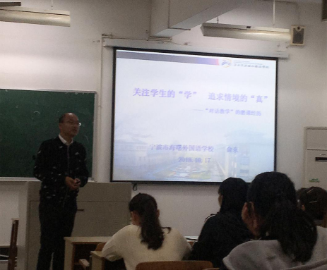 “教育智慧大讲堂”第九十七讲在实验楼113如期举行。本次讲座主讲人为宁波市名师、宁波市教坛新秀,现任宁波市海曙外国语学校副校长俞东老师,英教16、17、18级同学前来听讲。讲座由英教系王华蓉老师主持。