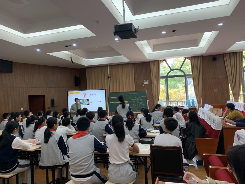 10月28日下午,英语教育系与宁波市海曙外国语学校举行了一场联合教研活动。活动在海外小学部报告厅进行,主题为“英语教学的中小衔接”。海曙外国语学校陈琪莉老师和吴丹妮老师先后执教了一节七年级的英语听说课和一节六年级的英语读写课。两位老师均采用“音-词-句-文”四位一体的教学模式,利用情景与活动,让英语学习与生活实际相结合;同时,两位老师还关注了听力与阅读的微技巧训练。课后,初中部和小学部英语教研组两位组长陆老师和曹老师分别对陈、吴两位老师的课进行了精彩的点评。