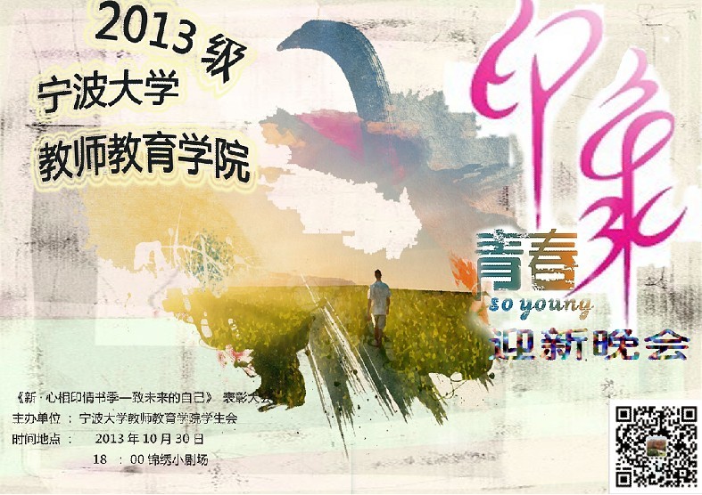 站在新学期的源头,h漫 迎来了一批新血液——2013级新生。在这欢聚的时刻,为了表示对新生的欢迎,让学子们感受h漫 的温暖,我们将举办以“印象·青春”为主题的迎新晚会。通过这次活动。来丰富学院的人文气息,发扬师院文化,展现师院风采。加强学生,班级间的文化交流,加强班级凝聚力,使各个班级的风采得以更好地展示。以文化活动的形式让同学们更好更快的融入大学生活,