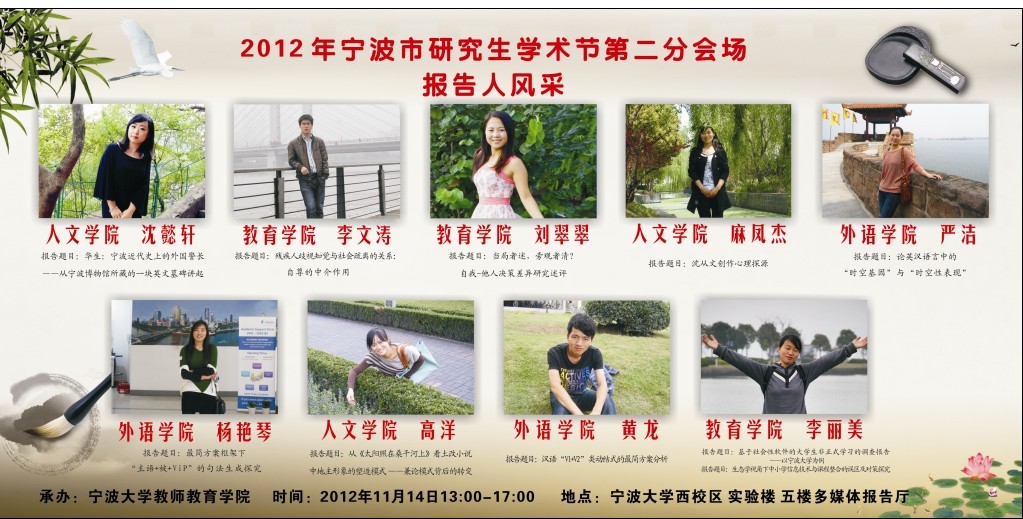 【研究生学工】2012年宁波市研究生学术节第二分会场学术报告通知