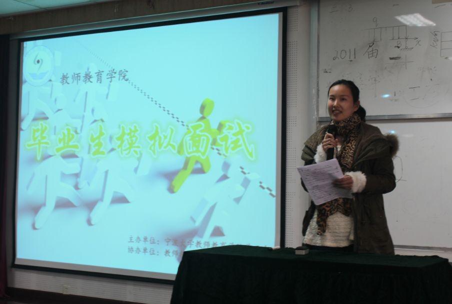2013124日星期三下午130分,h漫 在西区实验楼313进行了开展“毕业生模拟面试”活动。本次活动分为“演讲·试讲·点评三部分,来自学前教育,小学教育以及英语教育共六名学子参加了此次面试。