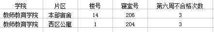 第六周寝室卫生检查3次以上不合格寝室汇总表