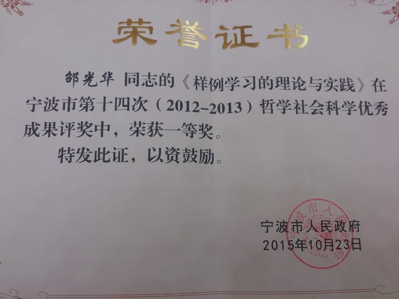 大会上,对宁波市第十四次哲学社会科学优秀成果奖进行了颁奖,h漫 邵光华副院长《样例学习的理论与实践》喜获宁波市第十四次哲学社会科学优秀成果奖一等奖。