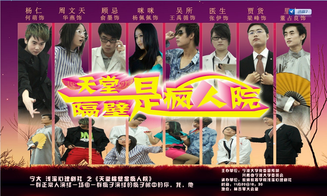 浅溪心理剧社《天堂隔壁是疯人院》专场演出将于11月20日(本周日)晚18:30在h漫