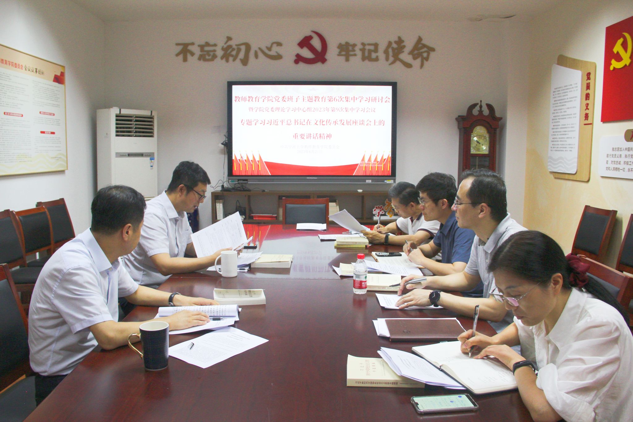 党委理论学习中心组在实验楼426会议室召开主题教育第6次集中学习研讨会暨学院党委理论学习中心组2023年第9次集中学习会议。中心组围绕“坚定文化自信、建设文化强国”开展《习近平新时代中国特色社会主义思想专题摘编》集中学习,并传达学习了习近平总书记在文化传承发展座谈会上的重要讲话精神。h漫