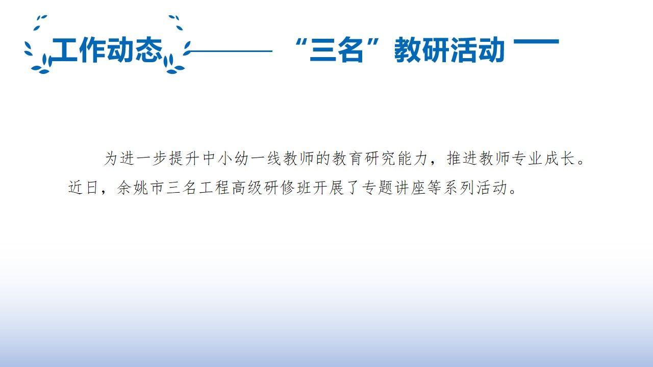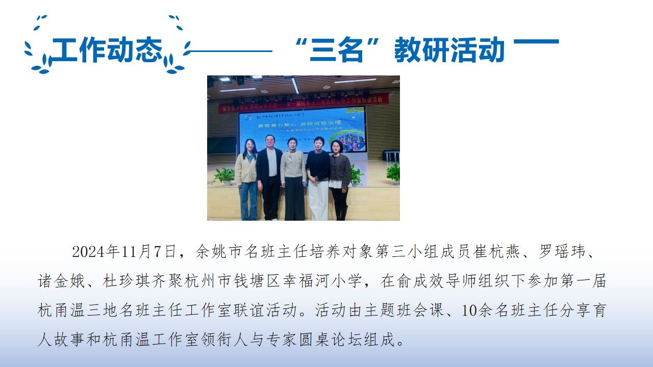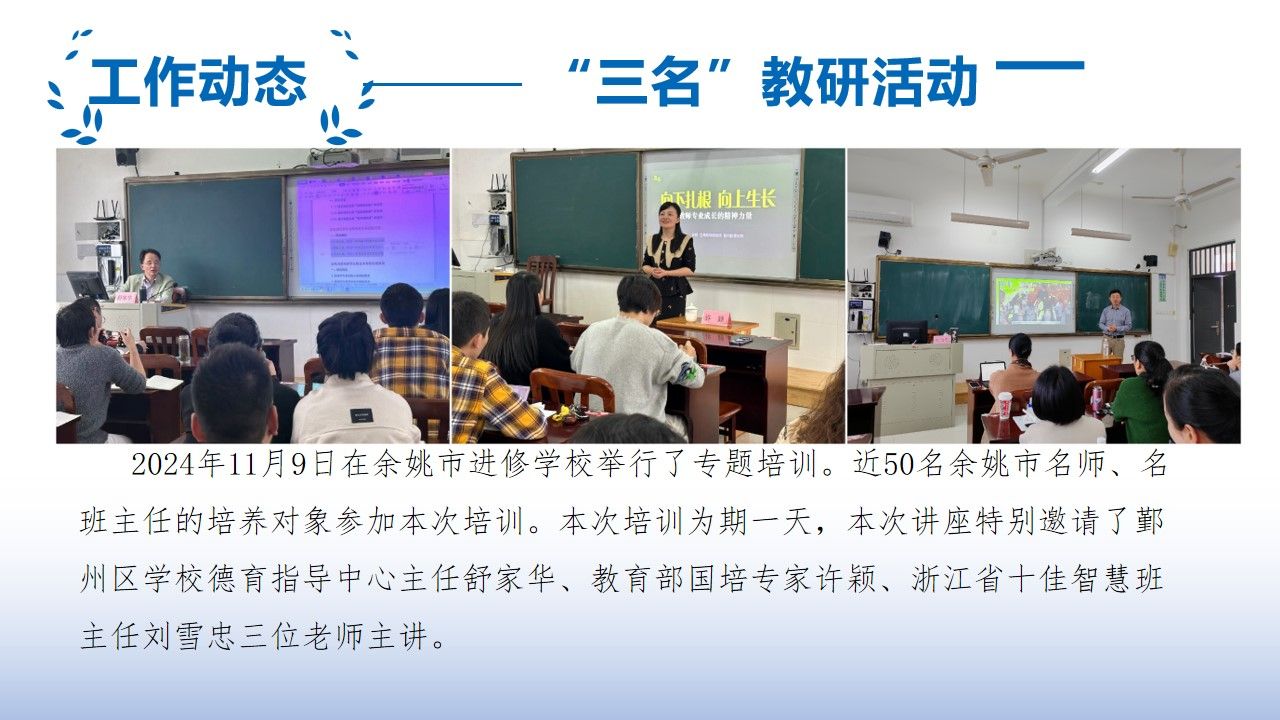 h漫 基础教育“三名工程”研究中心简报——余姚市第七期(名师、名班主任班活动)