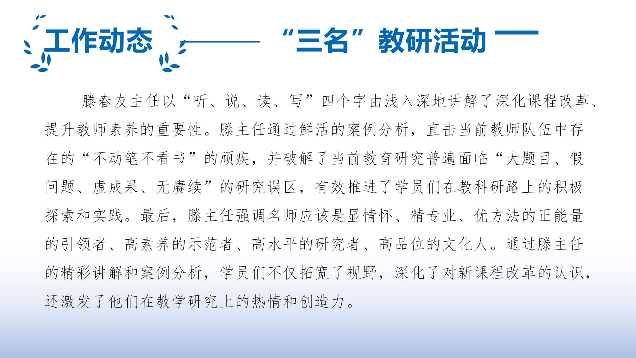 h漫 基础教育“三名工程”研究中心简报——“新课程新教学新评价”专题培训